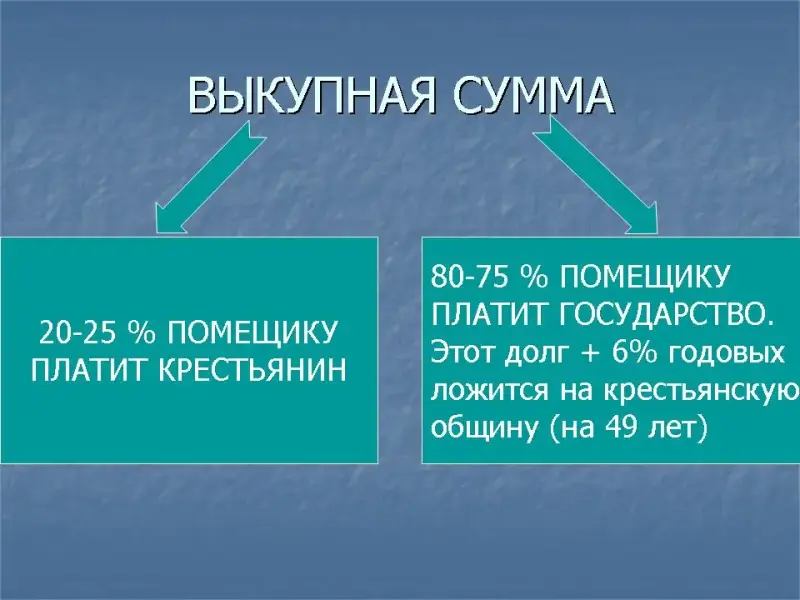 - решение аграрной стороны вопроса: выкупные платежи, выкупная сумма;