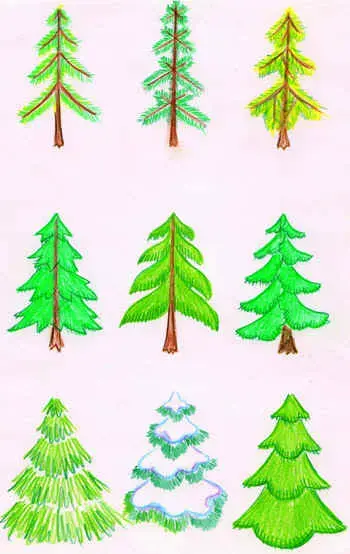 - способы изображения хвойных деревьев (рисунок 1, рисунок 2)