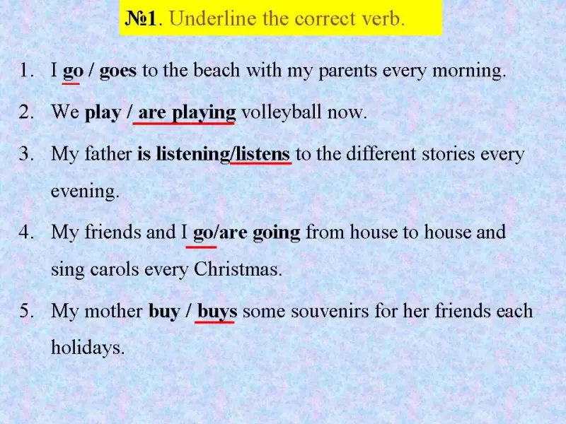 P5: My mother buys some souvenirs for her friends each holiday. Потому что "mother" это третье лицо (Она), а с местоимениями третьего лица мы к глаголу