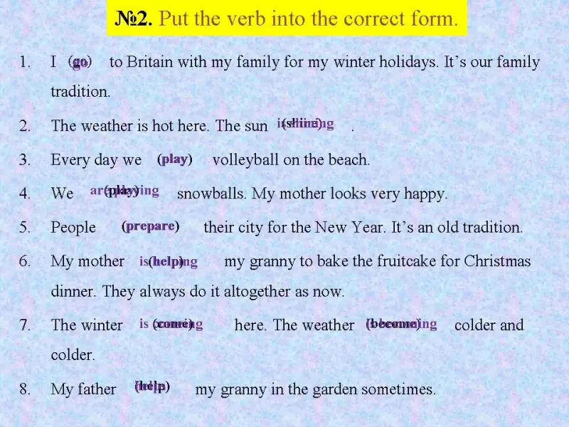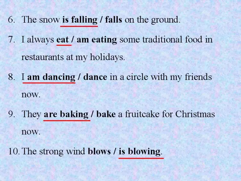 P6: My mother is helping my granny to bake the fruitcake for Christmas dinner. They always do it altogether as now. Потому что в предложении есть слово