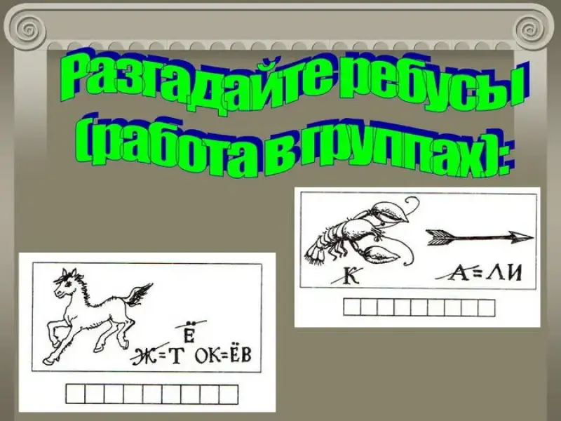 Учитель предлагает прочитать задание и разгадать ребусы.