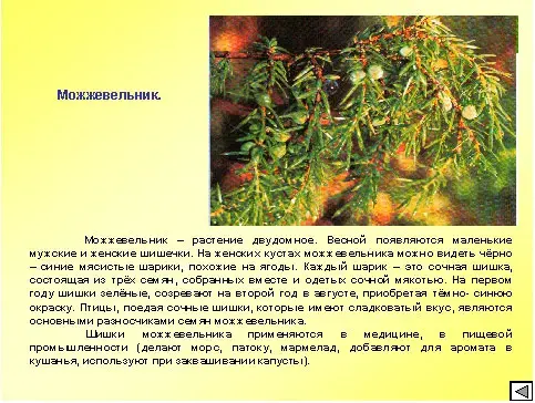 Внимательно рассмотрите изображение этого растения и послушайте сообщение ученика о можжевельнике и подумайте - что необычного у этого растения?