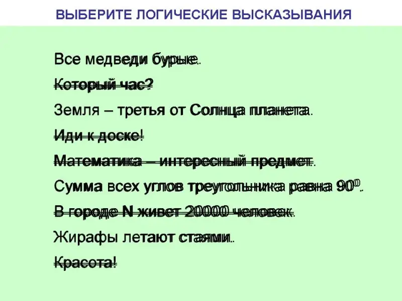 Задает вопрос: Выберите из предложений на слайде истинные и ложные высказывания. Объясните свой выбор (Презентация). |