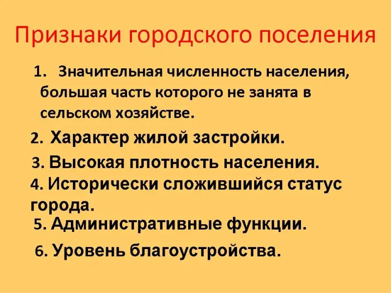 Вопрос: Так что же существует общего у всех городских поселений, что их объединяет?