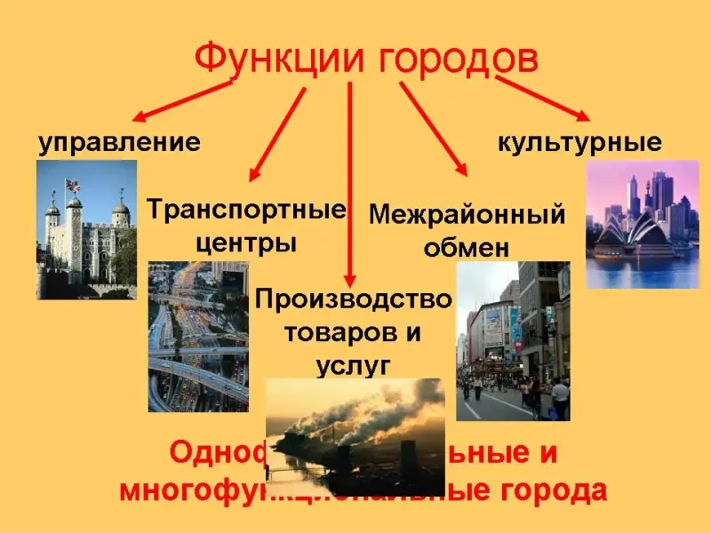 По особенностям выполняемых функций города делятся на многофункциональные и однофункциональные.