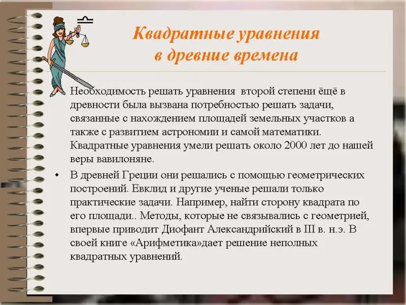 Презентация 1 (слайды 1-4) «История квадратных уравнений и современные представления»