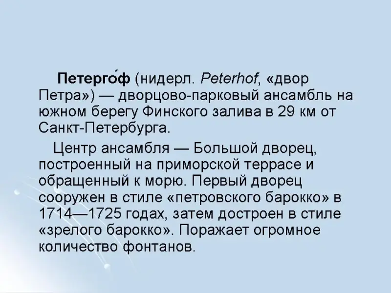 Дворцовый ансамбль в Петергофе (Санкт-Петербург)