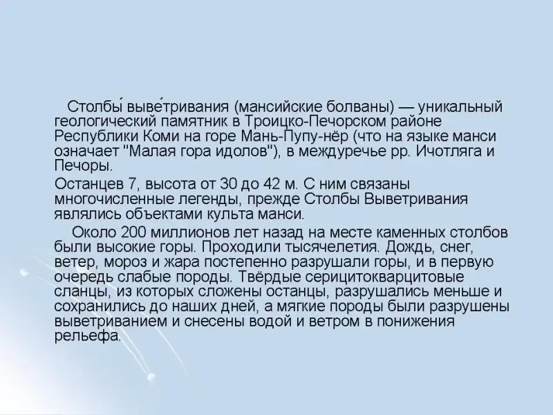 Природный памятник Столбы выветривания (республика Коми)