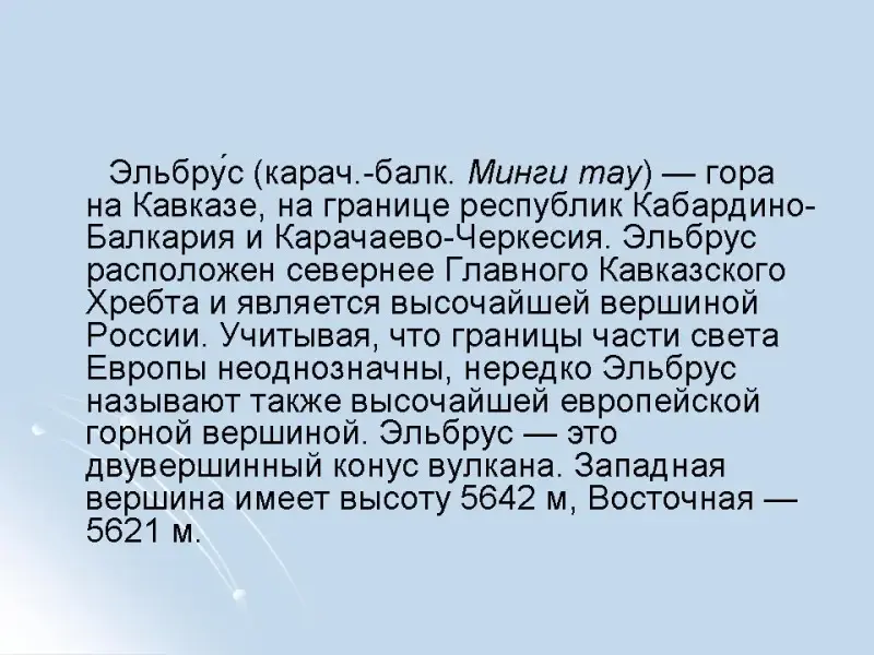 Гора Эльбрус (Кабардино-Балкария, Карачаево-Черкесия)