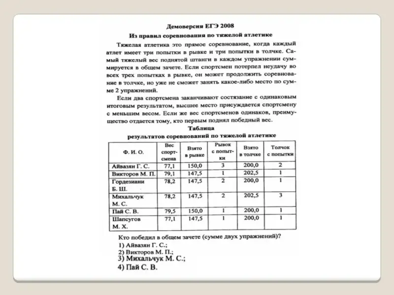 Вашему вниманию предлагается первый тип заданий ЕГЭ: (слайд №5,6,7,8).