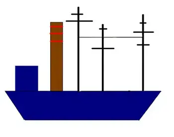 Ребята садятся за компьютеры, открывают графический редактор Paint, потом файл с именем Кораблик.gif, в котором заготовлен одинаковый для всех рисунок - кораблик. Готовый рисунок ребятам предстоит раскрасить, дополнив его несколькими элементами, а именно: на растяжку между мачтами навесить флажки, уголки флажков - под углом 450, нарисовать иллюминаторы.