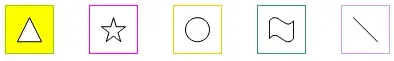 Затем детям предъявляют 5 карточек, соответствующих по размеру, цвету и форме карточкам и предлагается вспомнить значки в соответствии с цветом карточек.