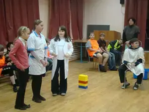 Вступительное слово учителя (он же ведущий): "Дорогие ребята! Здравствуйте! Здравствуйте! Здравствуйте!". Когда люди, приветствуя друг друга, говорят "здравствуйте", то они желают здоровья. Здоровье - это состояние полного физического, духовного и социального благополучия, а не только отсутствие болезней и физических недостатков.