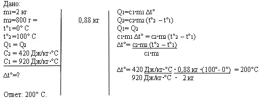 2) На сколько градусов нагреется кусок алюминия массой 2 кг, если ему сообщить такое количество теплоты, какое идет на нагревание воды массой 880 г от 0°С до 100°С?