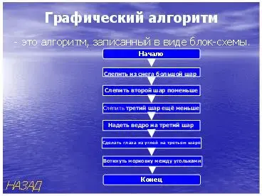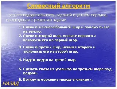 Из слайда 4 можно выйти на слайд 5 с определением словесного алгоритма и описанием построения снеговика (словесный алгоритм)