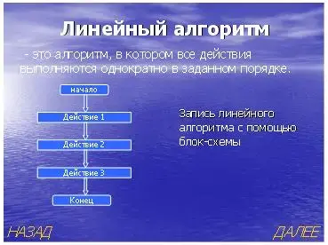 После ответа учащихся демонстрируется слайд 8 с определением и изображением блок схемы линейного алгоритма: