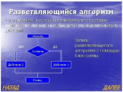 Демонстрируется слайд10, на котором изображена блок-схема разветвляющегося алгоритма и его определение.