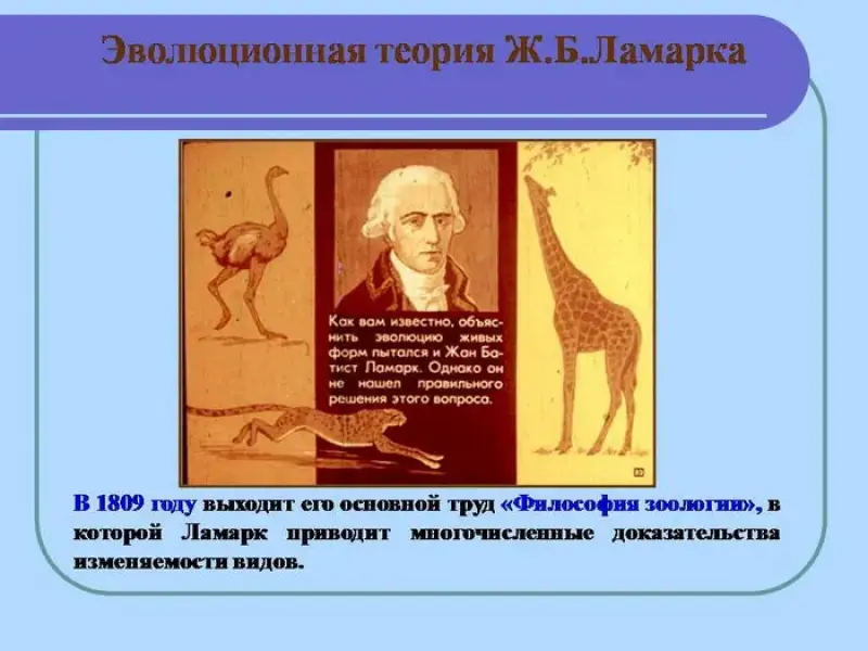 Цель: сформировать знания о первой эволюционной теории (Ж.Б. Ламарк).
