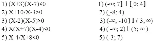 3) Перед вами неравенства и их ответы вразброс. Для каждого неравенства нужно найти подходящий ответ.