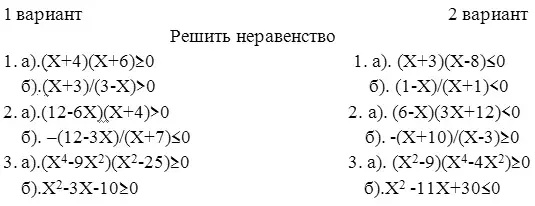 - способствовать усвоению решения неравенств методом интервалов в ходе решения неравенств;