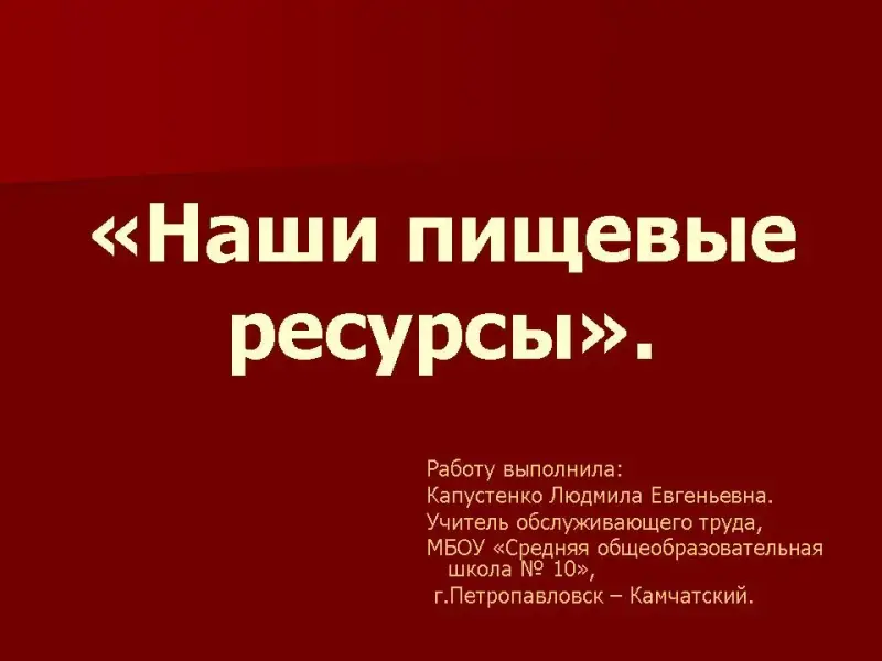 Интегрированный урок (биология + технология + химия) "Наши пищевые ресурсы"