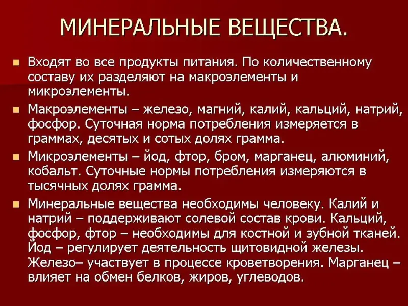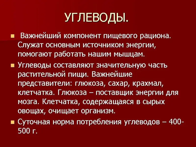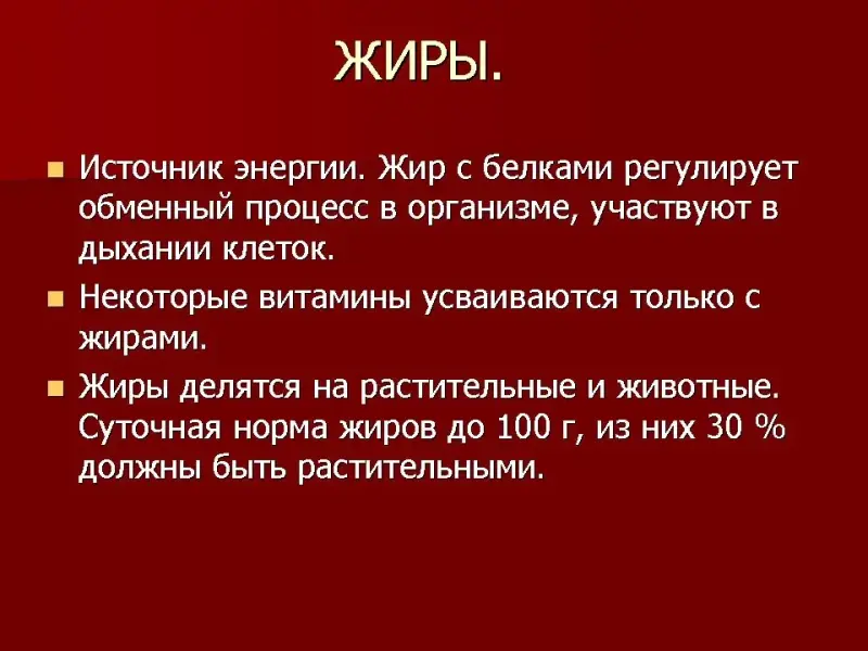 Учитель химии: Наша пища - это топливо и сырьевой материал для образования необходимых живому организму веществ. Молекулы пищевых веществ служат основой построения всех клеток нашего организма. В то же время молекулы пищи «сгорают» внутри нас и снабжают организм энергией, необходимой для поддержания его постоянной температуры, физической и мыслительной деятельности. Энергией организм снабжает практически любая пища, но больше других продуктов содержат ее углеводы (сахар и крахмал). Однако для успешного функционирования нашему организму нужны также белки и жиры, абсолютно необходимы витамины и минеральные соли, хотя и в очень небольших количествах. Каждый, кто следит за своим весом, должен считать калории, которые поступают в организм с едой. Калория - это единица измерения количества энергии, в том числе и в продуктах питания. Одна калория - это количество теплоты, необходимое для нагревания 1 г воды на 1 °С. 1 килокалория (ккал) содержит 1000 калорий (кал). Например, порция жаренной в масле картошки содержит 220 ккал.