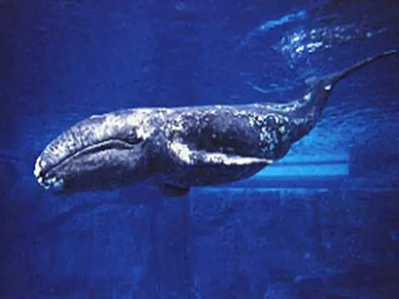 Серый кит внесен в Международную Красную книгу. Считается одним из древнейших млекопитающих - возраст вида насчитывает около 30 миллионов лет. Длина тела 11-15 м, масса - от 20 до 37 т. Самки серого кита вынашивают детеныша - год и еще примерно столько же времени мать выкармливает и поддерживает малыша.