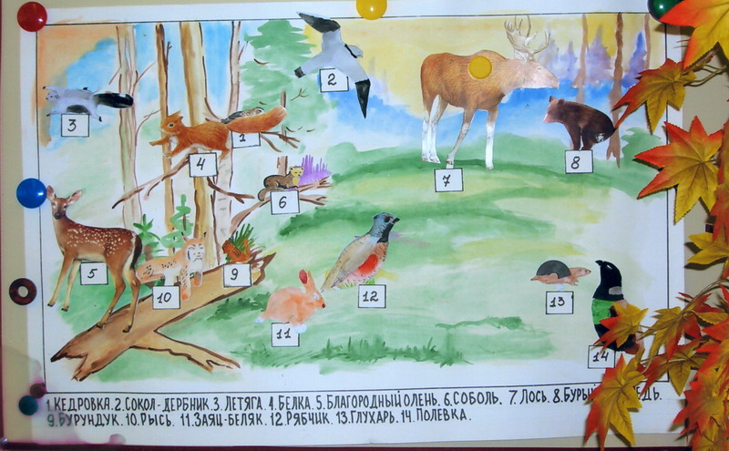 Карта природных зон, гербарии, плакаты, репродукции, запись голосов птиц, музыка, видеофильм