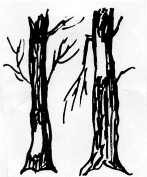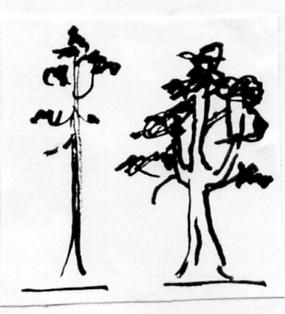 Здесь нарисованы две сосны. Одна из них выросла в густом лесу, другая-