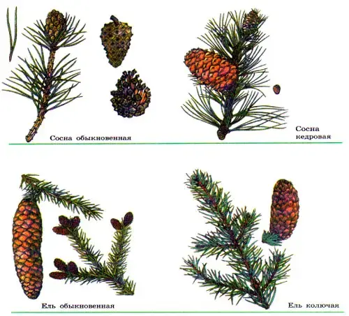 4. Рассмотрите шишки сосны и ели. Укажите их различия.