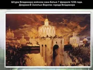 Видеосюжет, демонстрирующий захват русских княжеств монголо-татарским войском.