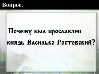 Вопрос: Почему был прославлен князь Василько? (За мученический христианский подвиг)