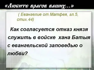 Как согласуется отказ князя служить в войске Батыя с евангельской заповедью о любви: "Любите врагов ваших. ( Евангелие от Матфея. гл 5 стих 44)?