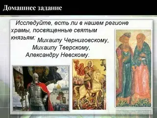 Исследуй, есть ли в нашем регионе храмы, посвященные святым князьям: Михаилу Черниговскому, Михаилу Тверскому, Александру Невскому.
