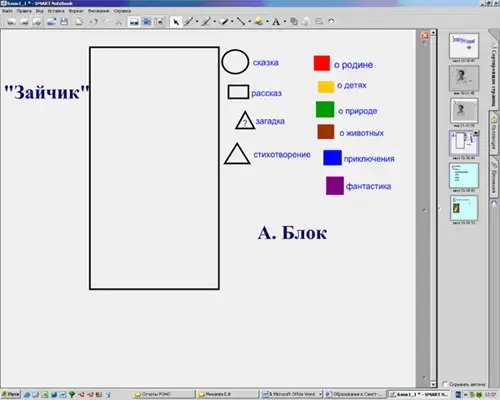 Учитель читает стихотворение А.Блока «Зайчик».На интерактивной доске открыта страница № 2 (рисунок 2).