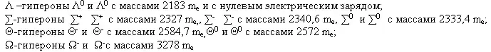 Вторая группа частиц получила название гиперонов. В настоящее время известны следующие гипероны:
