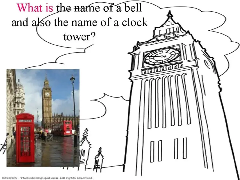 | Big Ben is the name of a bell and also the name of a clock tower. |