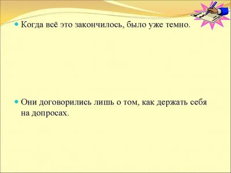 5) Когда всё это закончилось, было уже темно. (Когда… ), [ … ],