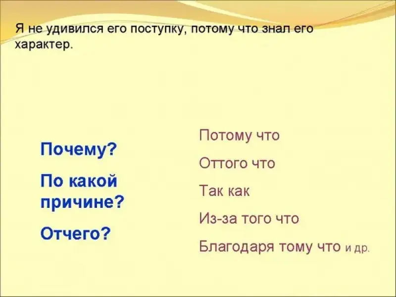 - Почему я не удивился его поступку? (Придаточное предложение указывает на причину того, о чем говорится в главном предложении).
