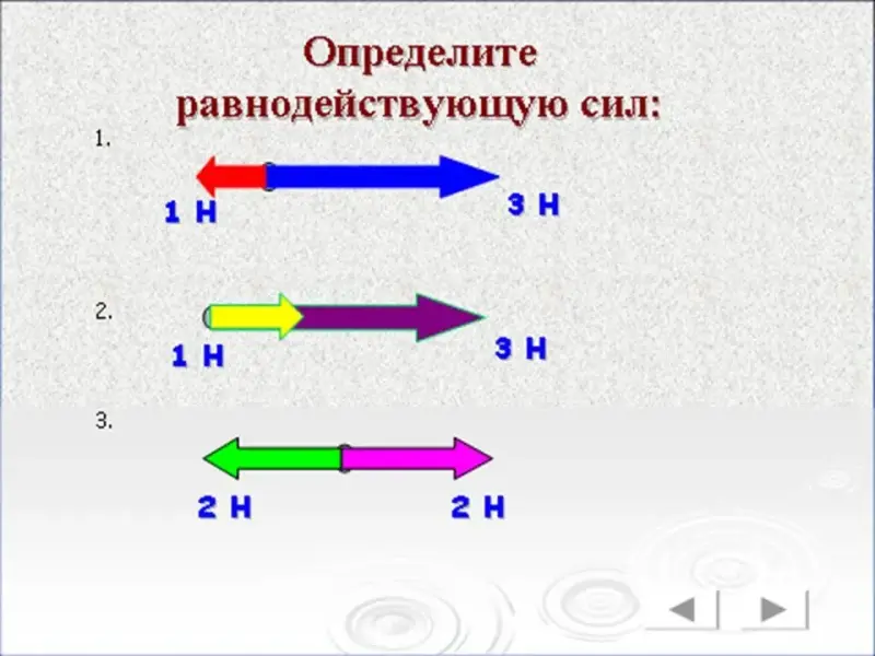 - Определите модуль равнодействующей силы и графически изобразите ее по рисункам на ваших карточках.