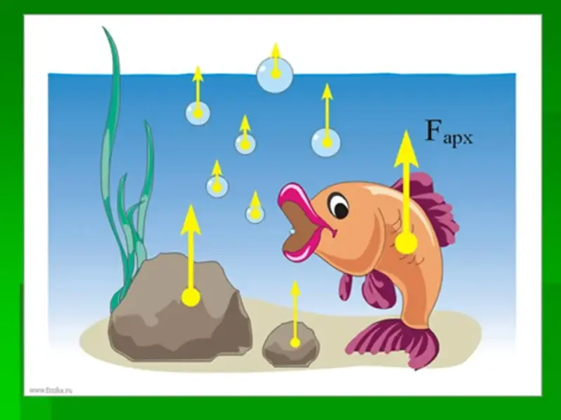 2. Равнодействующая при погружении рыбки в воду. ( Д -16 или Слайд 25)