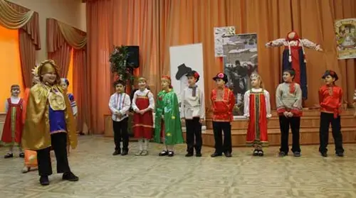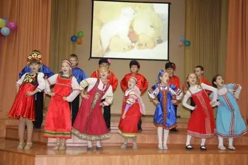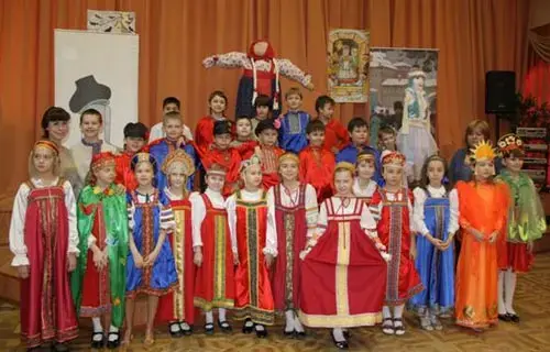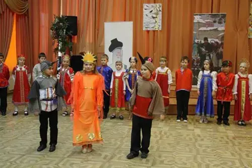 народные фольклорные мотивы и не только по содержанию, но и, что не менее важно, по оформлению. Для детей очень важны внешние атрибуты праздника: сарафаны, кокошники, вышитые рубахи…