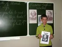 Today we are going to talk about " Famous English Writers and Their Books". For today Matvey, Sergey and Kate have prepared reports about William Shakespeare,