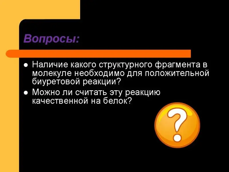 Биуретовая реакция (распознавание пептидных связей). (Слайд №28)