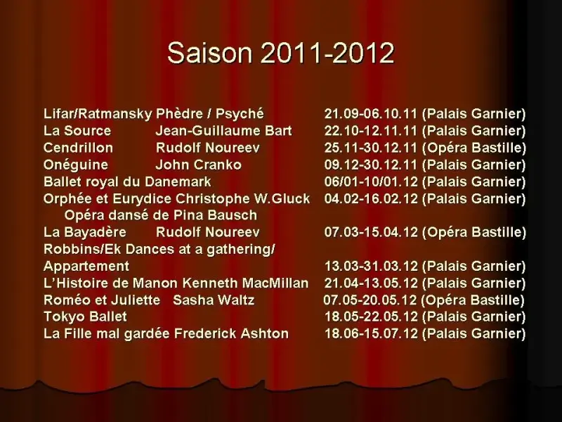 Le répertoire du Ballet de l'Opéra est très étendu, il va de grands ballets romantiques et classiques aux creations des chorégraphes contemporains.