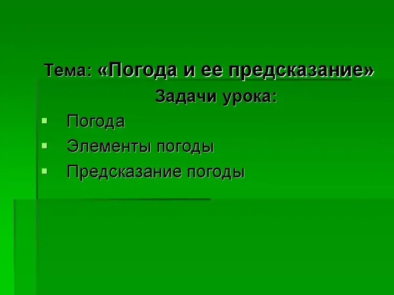 - Сформировать у учащихся новые понятия: погода, элементы погоды, приметы;