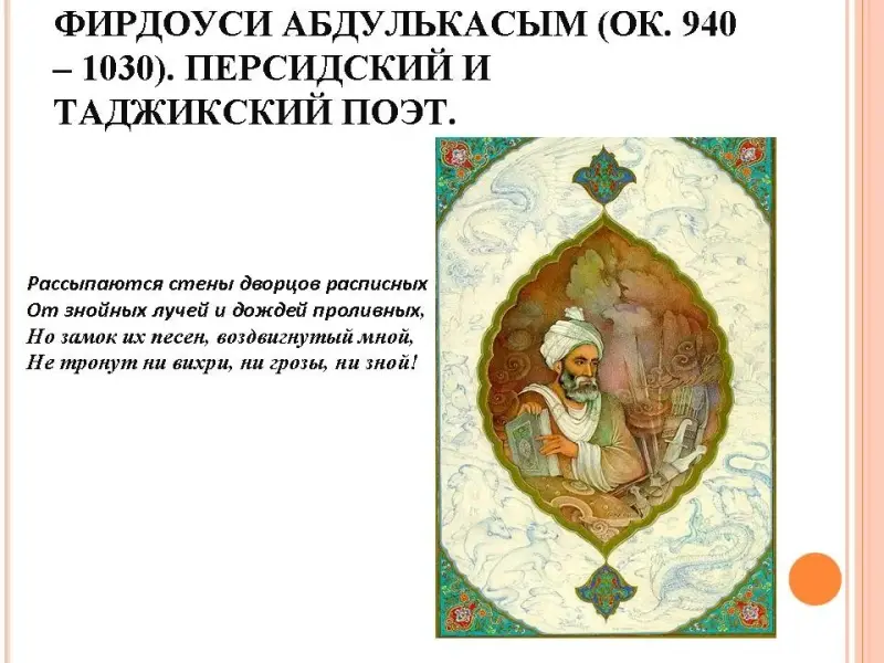 - Жизнь и творчество Абулькасима Фирдоуси.