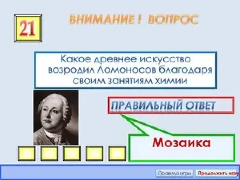 - Какое древнее искусство возродил Ломоносов благодаря своим занятиям химии (мозаика)