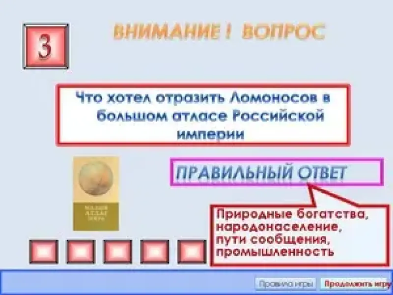 - Что хотел отразить Ломоносов в большом атласе Российской империи (природные богатства, народонаселение, пути сообщения, промышленность.)