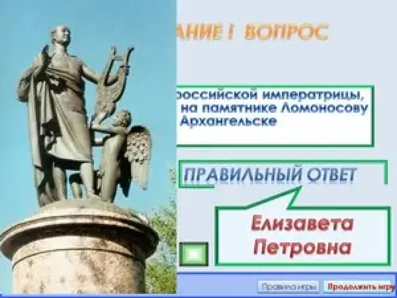 - Вензель, какой российской императрицы, выгравирован на памятнике Ломоносову в Архангельске (Елизавета Петровна)